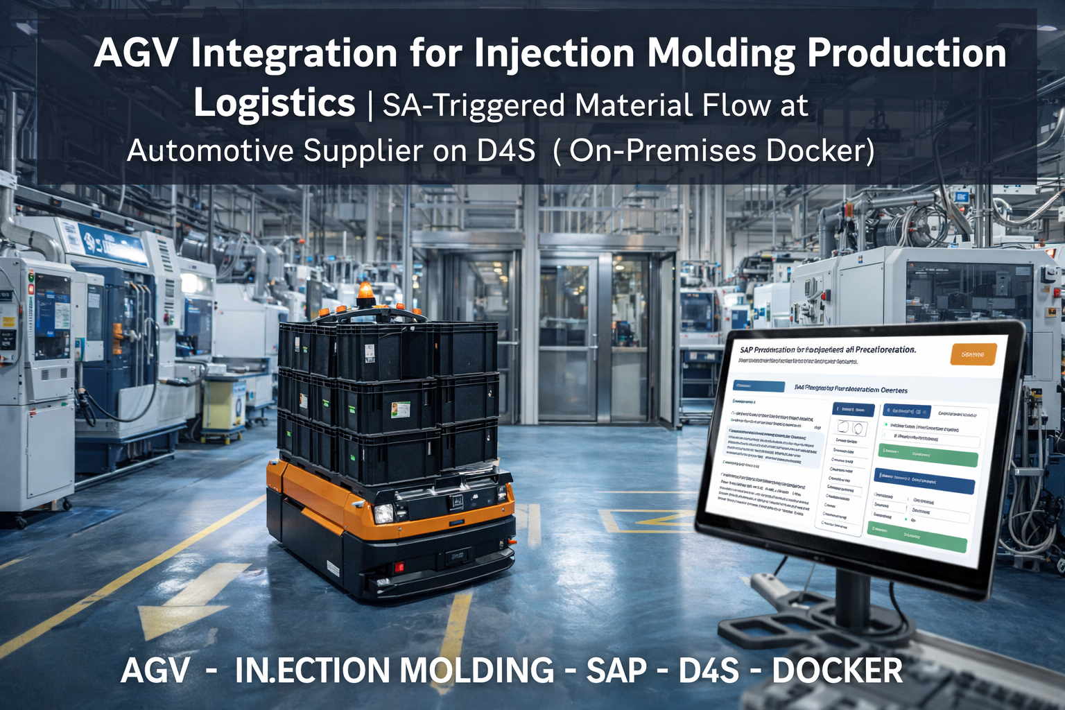 The solution enabled a controlled, SAP-aligned material flow using AGVs, improving efficiency and reducing manual coordination in an injection molding operation.